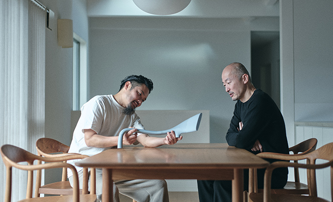 “空間に置いたときに暮らしを邪魔せず、同時に凛とした佇まいを持つ家具のあり方とは。そんな意識のもと、可能な限りプロダクトのボリュームを抑え、柔らかく軽やかなデザインを目指しました。”(デザイナー・鈴木元)