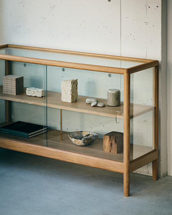 住まいの飾り棚としてはもちろん、店舗のショーケースとしても、置かれる空間に静かなリズムをもたらします。