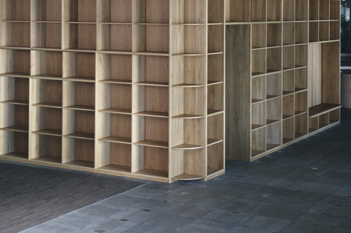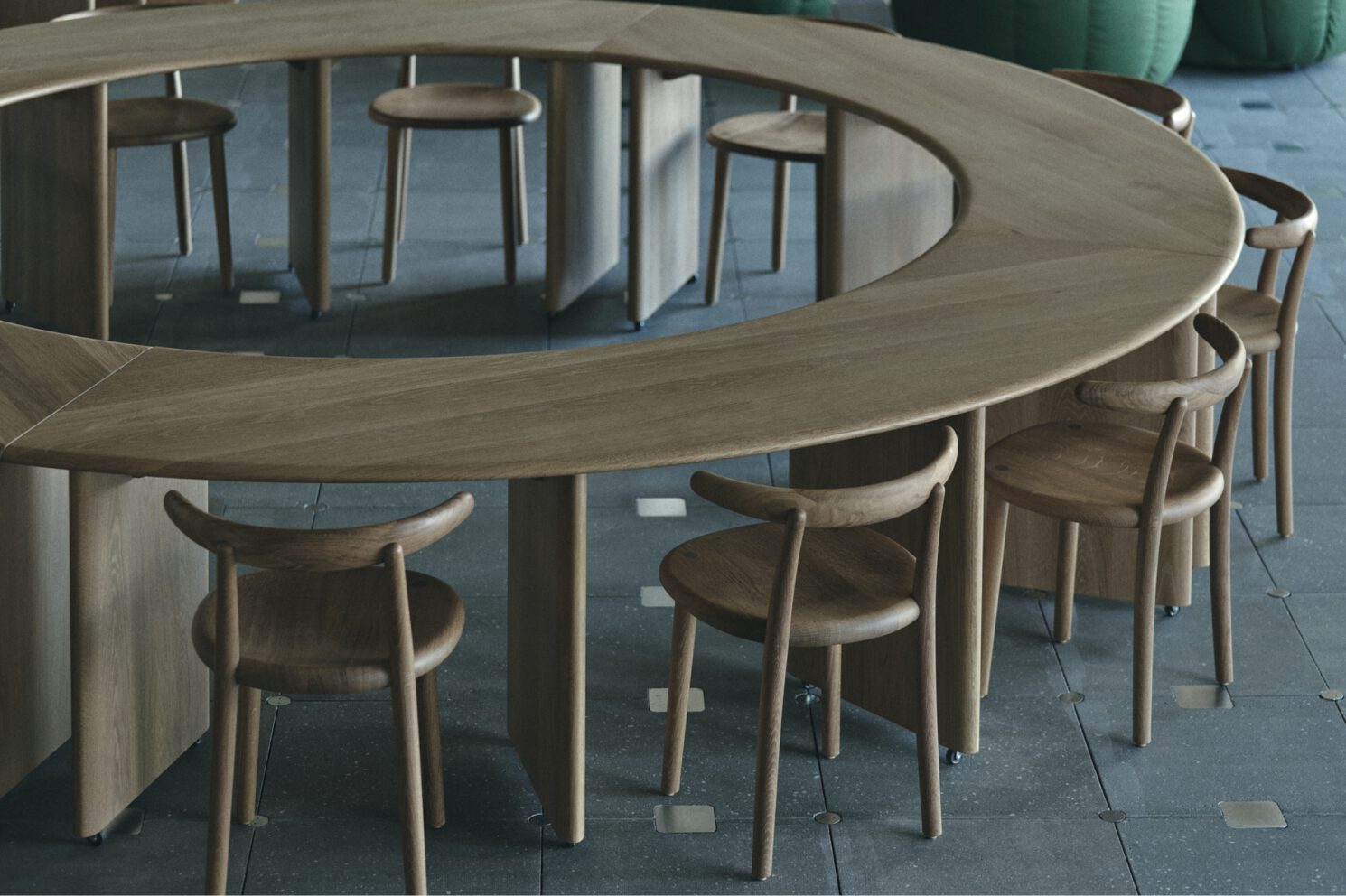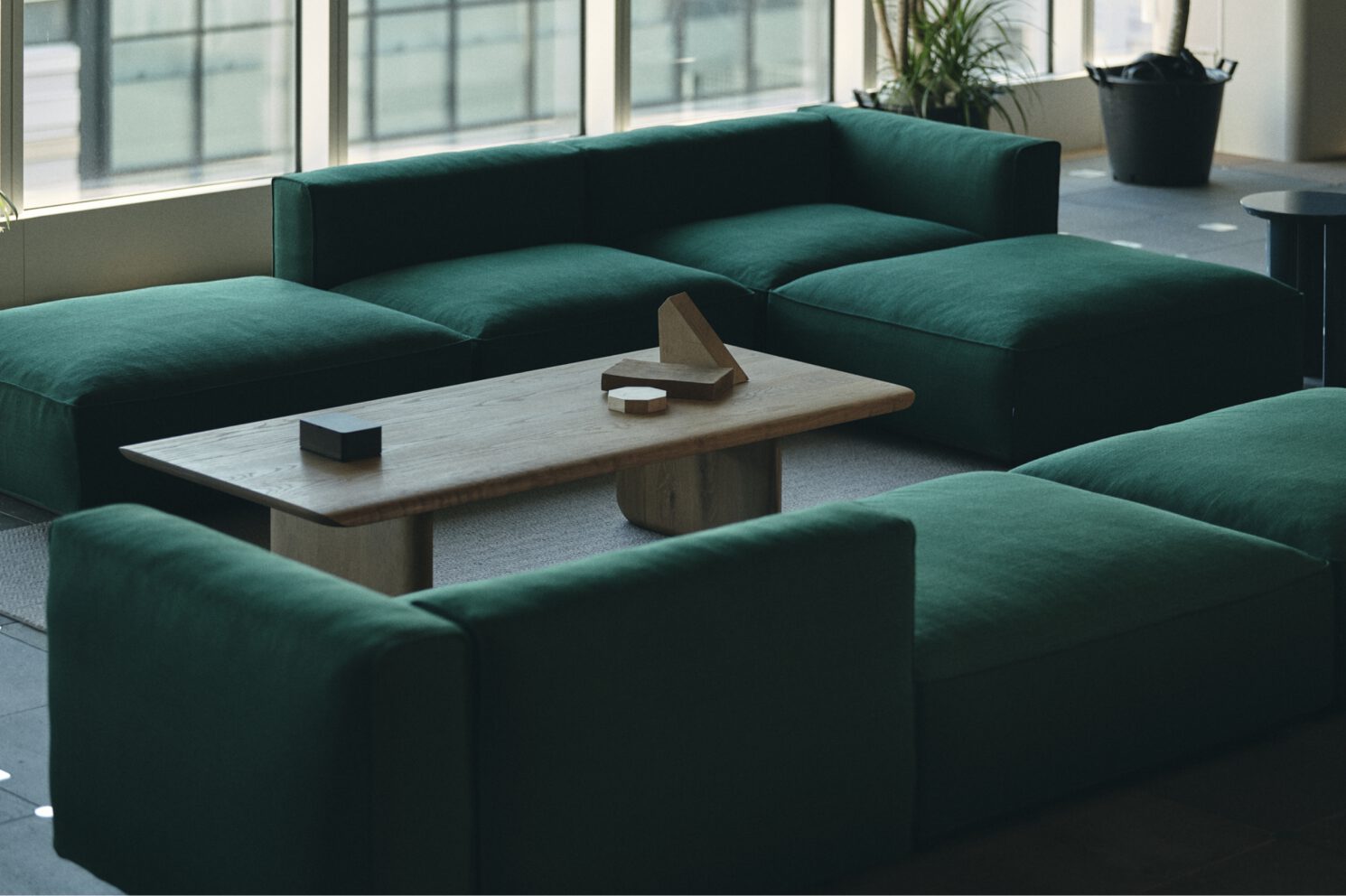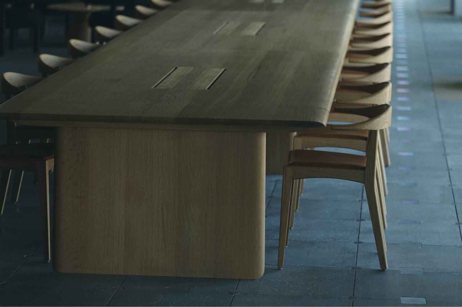 横浜・みなとみらいに新設されたSerendie Street Yokohamaは、異なる組織で働く人々同士の偶発的な出会いをコンセプトにした共創空間。デザインコレクティブYOHAK DESIGN STUDIOとコラボレーションし、デスクやチェア、造作棚やテーブル、内装を手がけました。空間のアイコンとなる壁面本棚は、壁の形状と連続したシームレスなデザイン。モジュール構造にすることで用途に合わせたアレンジやメンテナンスがしやすいつくりにしています。ワークスペース仕様調整した大小のテーブルを配置し、スケルトン天井の約800坪のオープンスペースを鉄骨の無機質なスマートさと、有機的な木のぬくもりが調和する空間に仕立てています。