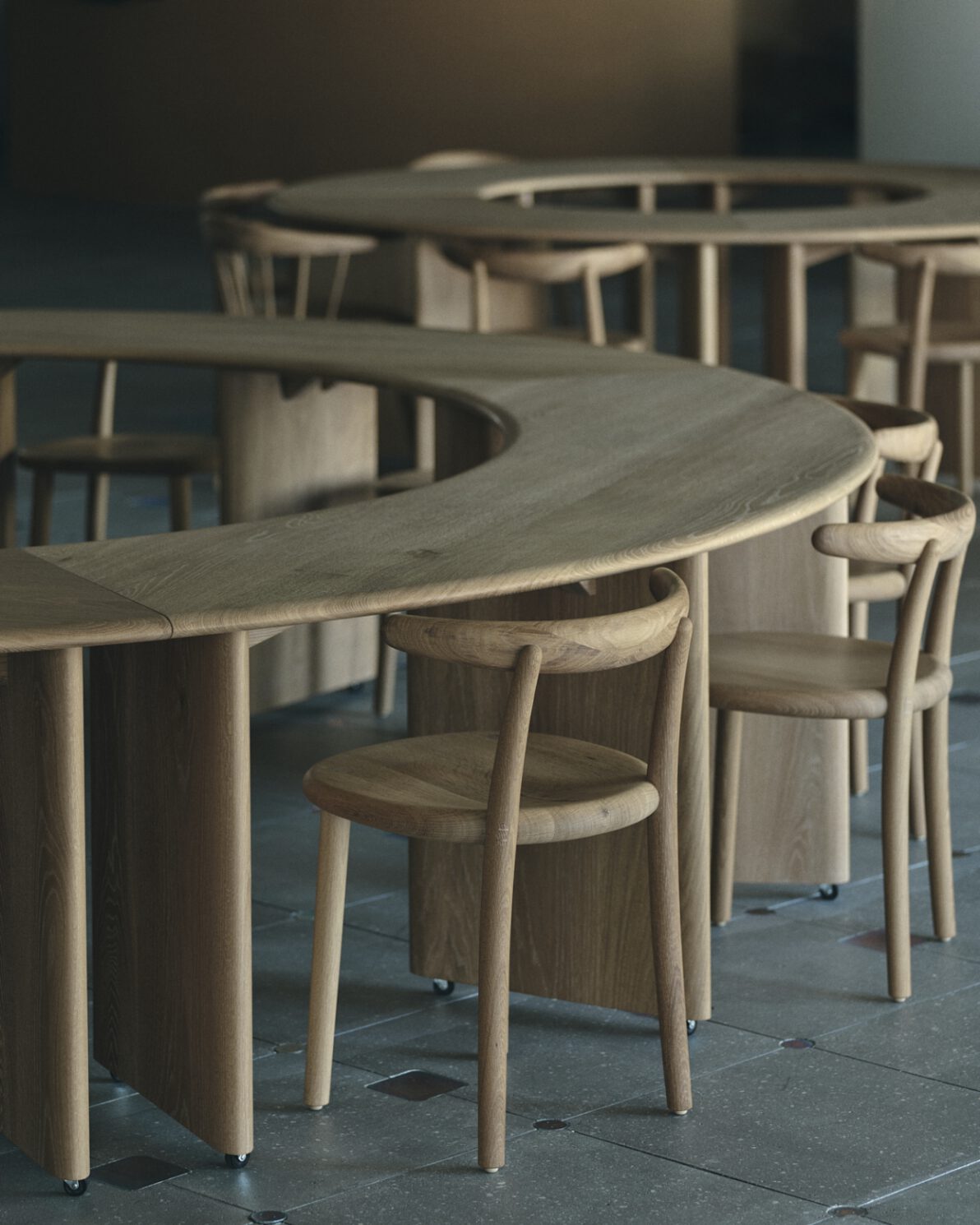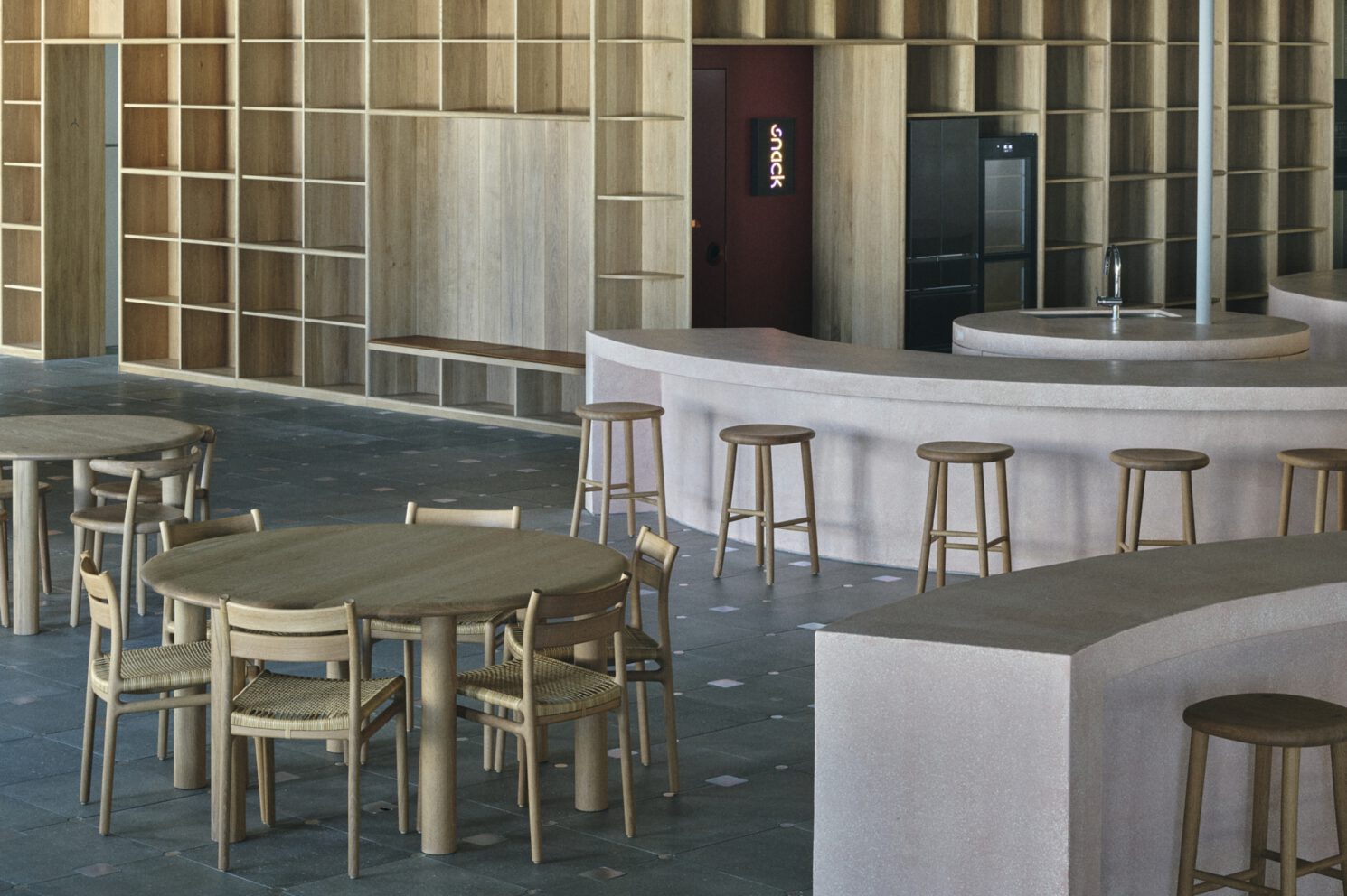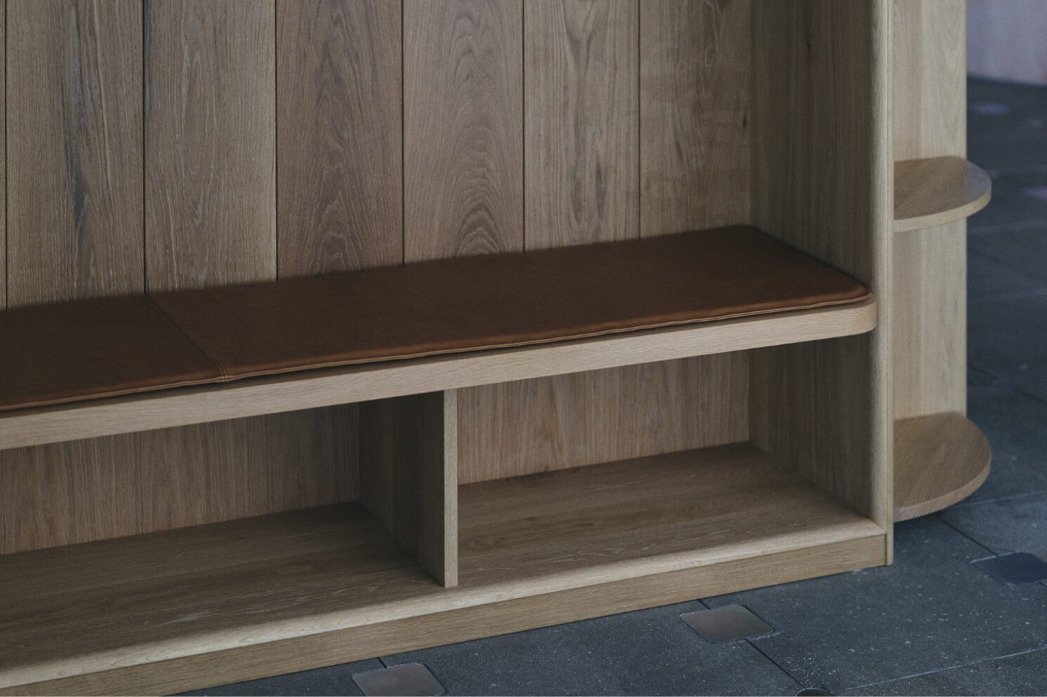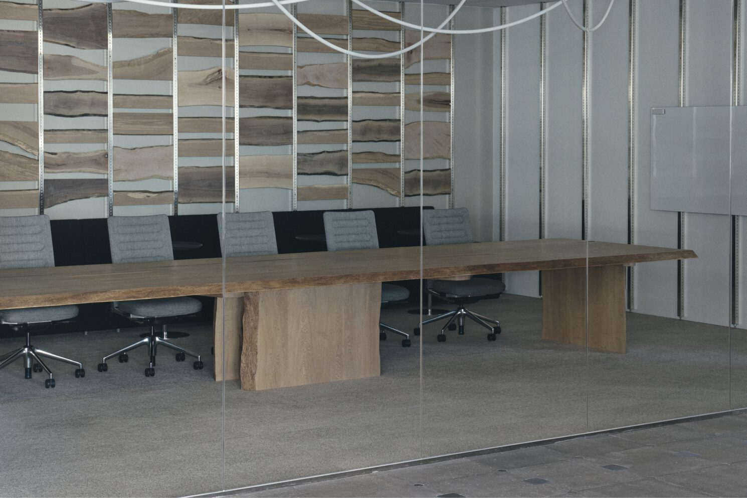 横浜・みなとみらいに新設されたSerendie Street Yokohamaは、異なる組織で働く人々同士の偶発的な出会いをコンセプトにした共創空間。デザインコレクティブYOHAK DESIGN STUDIOとコラボレーションし、デスクやチェア、造作棚やテーブル、内装を手がけました。空間のアイコンとなる壁面本棚は、壁の形状と連続したシームレスなデザイン。モジュール構造にすることで用途に合わせたアレンジやメンテナンスがしやすいつくりにしています。ワークスペース仕様調整した大小のテーブルを配置し、スケルトン天井の約800坪のオープンスペースを鉄骨の無機質なスマートさと、有機的な木のぬくもりが調和する空間に仕立てています。