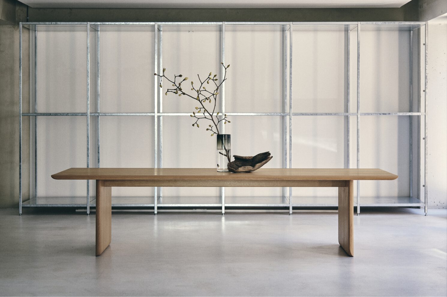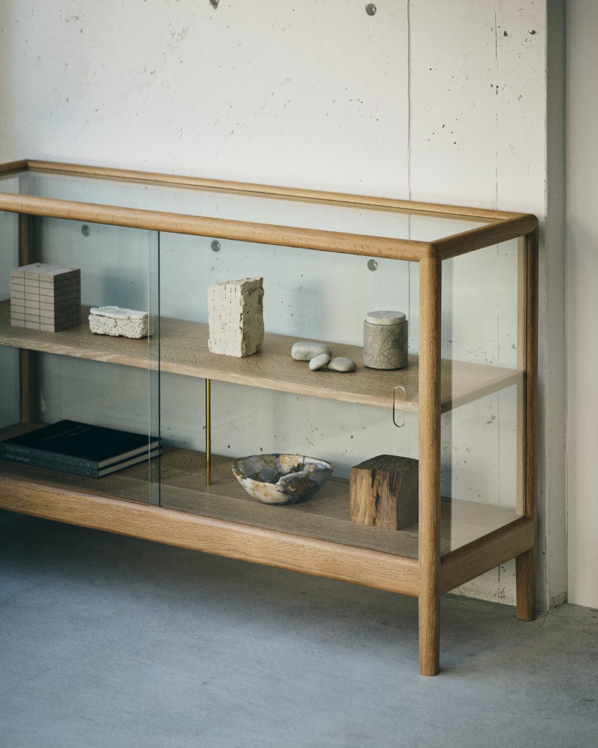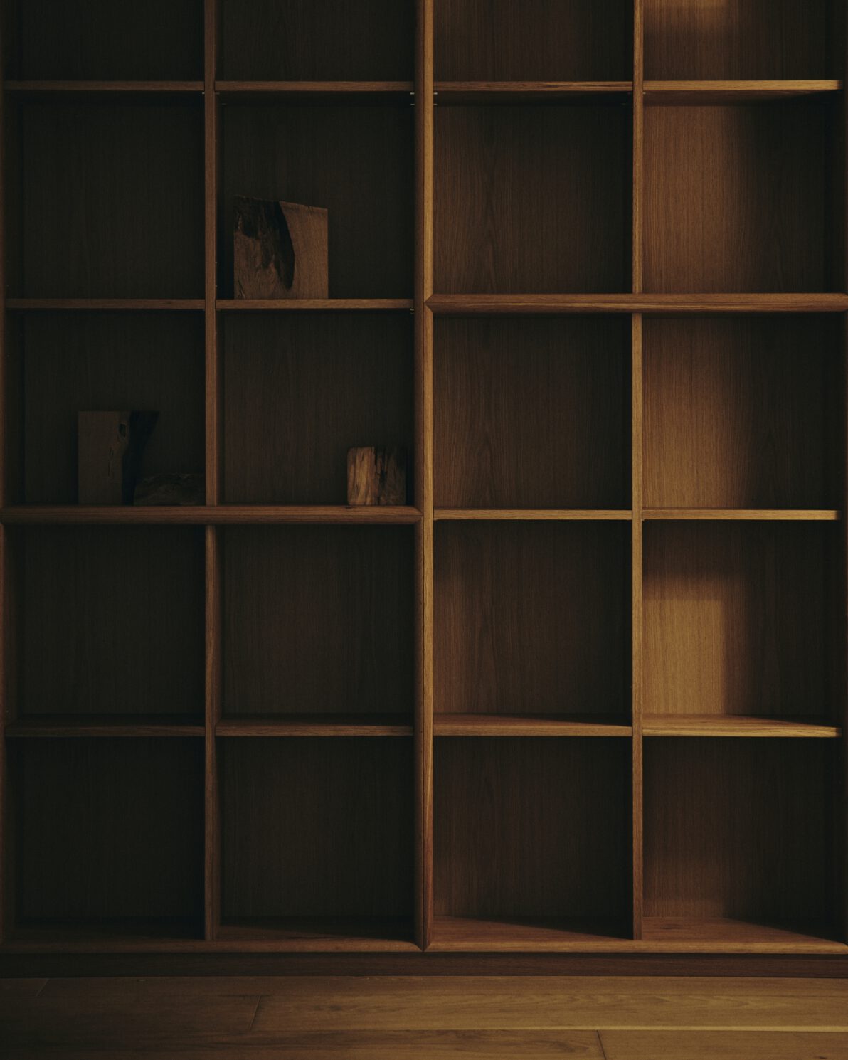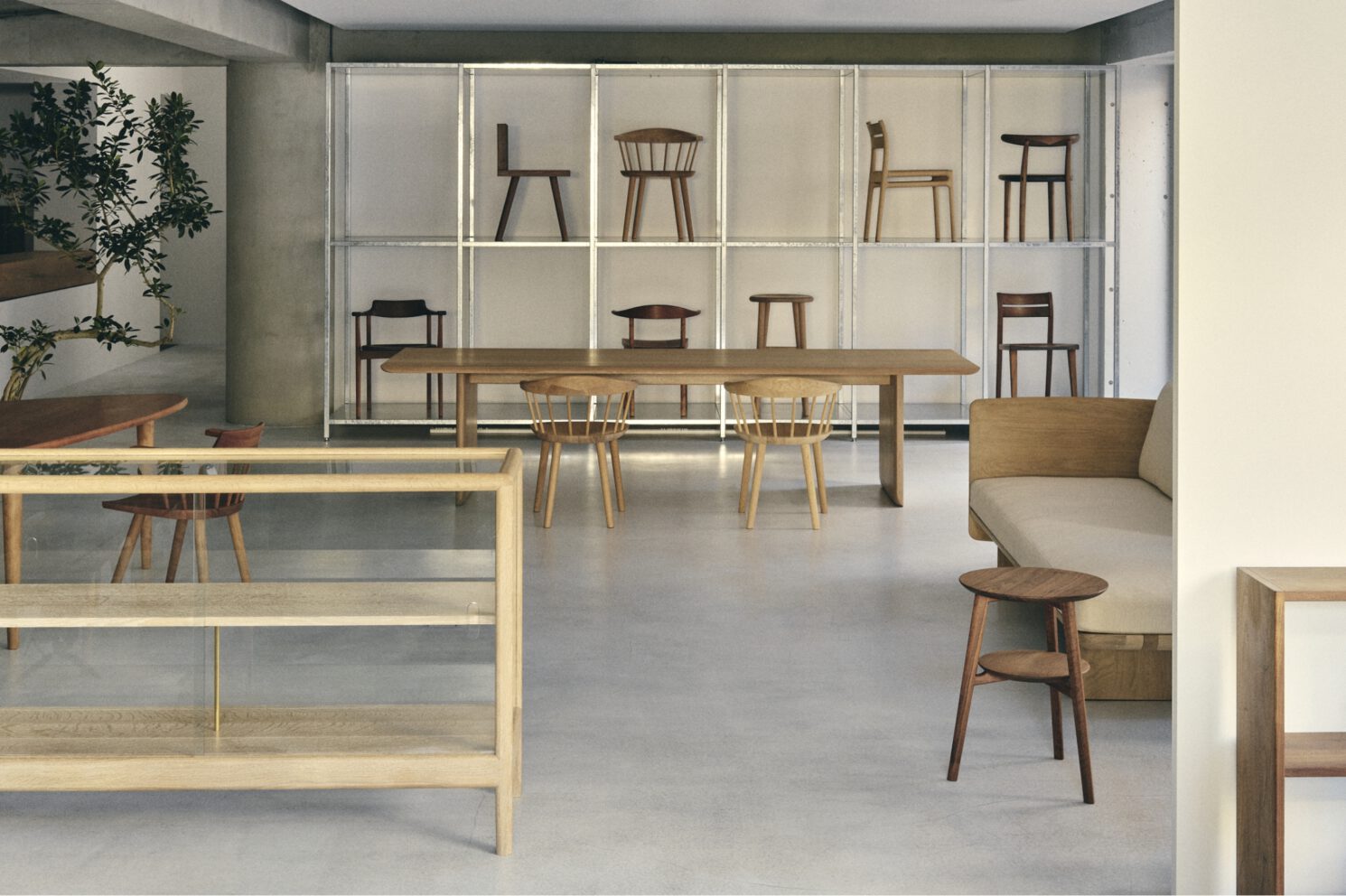 2024年末にリニューアルオープンしたWood You Like Company表参道の路面店は、ゆったりとした空間にこだわった、無垢の魅力を感じていただける店舗です。大木から切り出したようなカウンターは、無垢を扱うWood You Like Companyの象徴。二枚の板を直角に組み合わせることで、書類や備品の収納棚としても機能する、大胆かつ実用的なつくりになっています。ショップ内で唯一の半個室には、居室空間のサイズに合わせて設計した壁面棚を設置。実際の住空間に設置した時の存在感をイメージしていただけるようになっています。