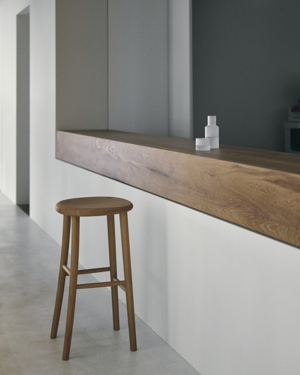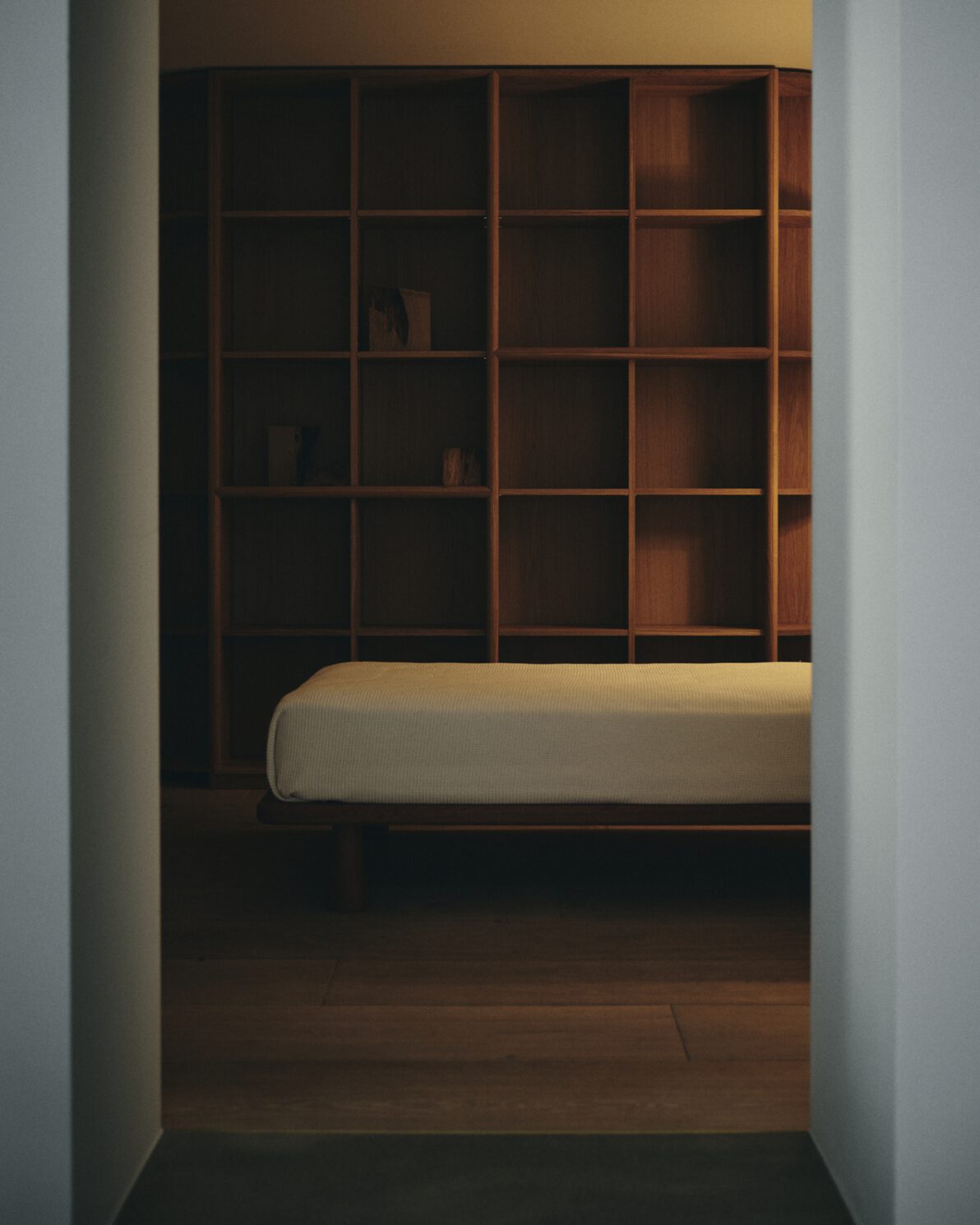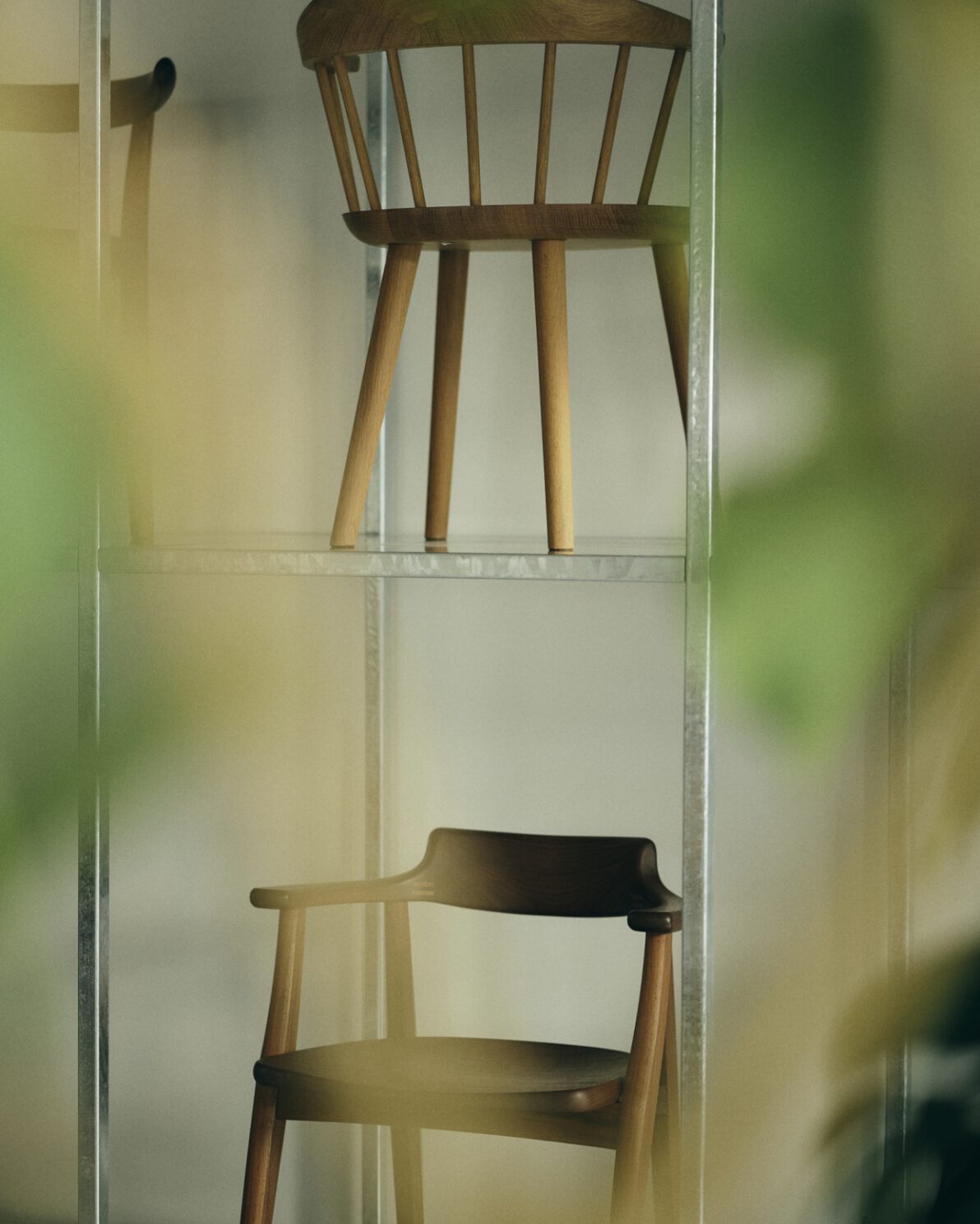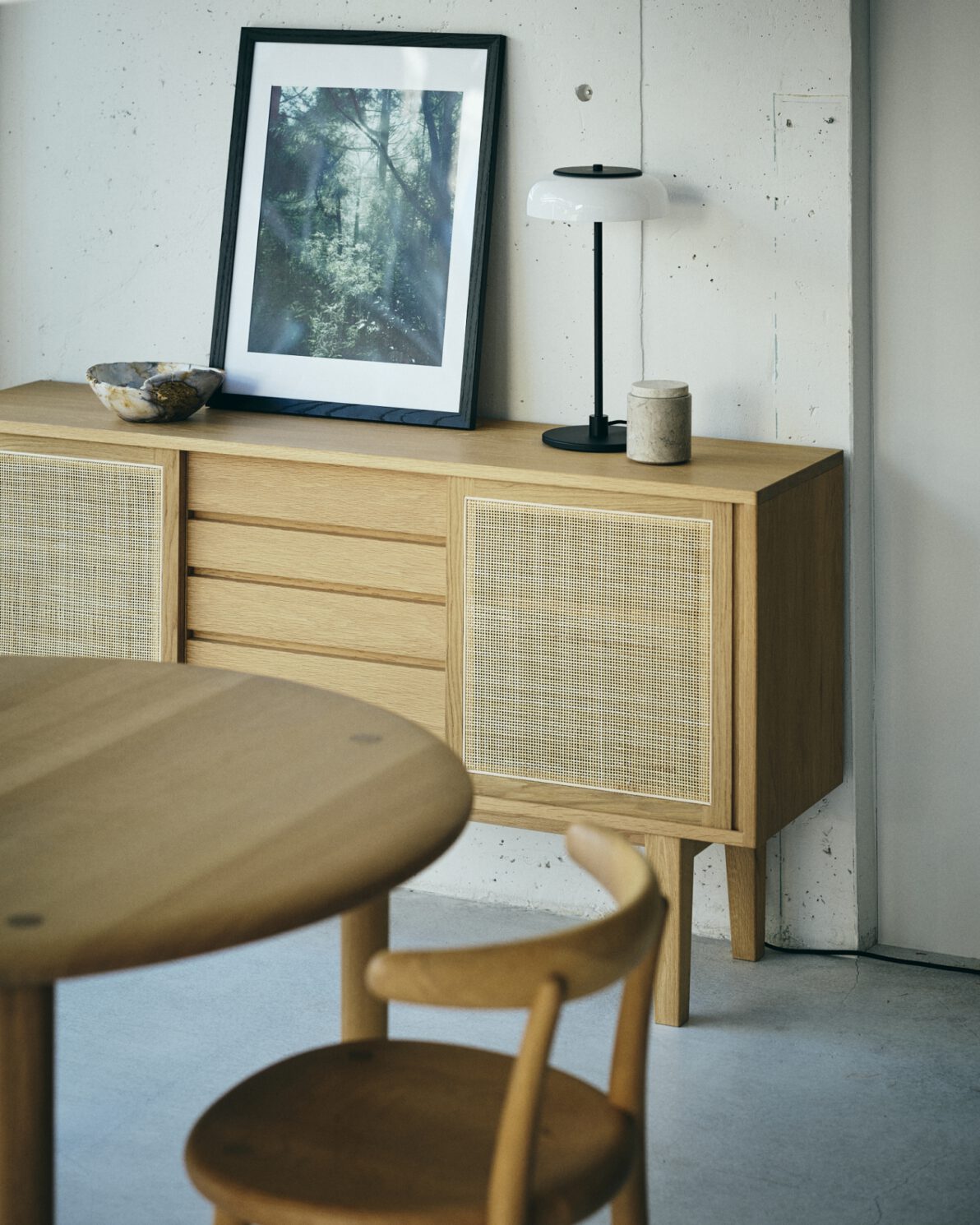 2024年末にリニューアルオープンしたWood You Like Company表参道の路面店は、ゆったりとした空間にこだわった、無垢の魅力を感じていただける店舗です。大木から切り出したようなカウンターは、無垢を扱うWood You Like Companyの象徴。二枚の板を直角に組み合わせることで、書類や備品の収納棚としても機能する、大胆かつ実用的なつくりになっています。ショップ内で唯一の半個室には、居室空間のサイズに合わせて設計した壁面棚を設置。実際の住空間に設置した時の存在感をイメージしていただけるようになっています。